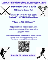 Required: Field hockey stick, shin guards, mouthguard, lacrosse stick, goggles & water.